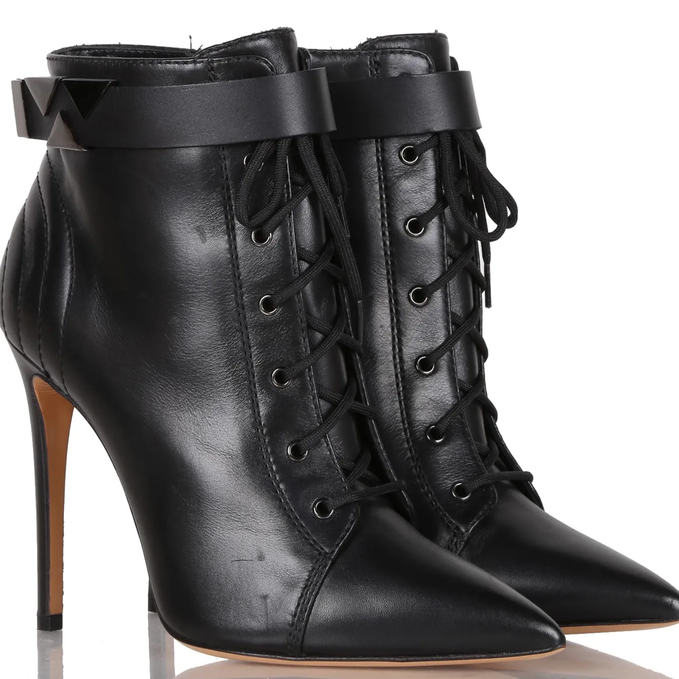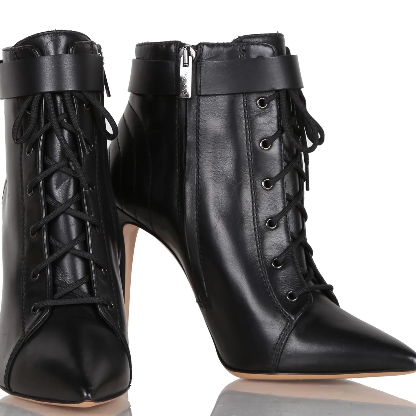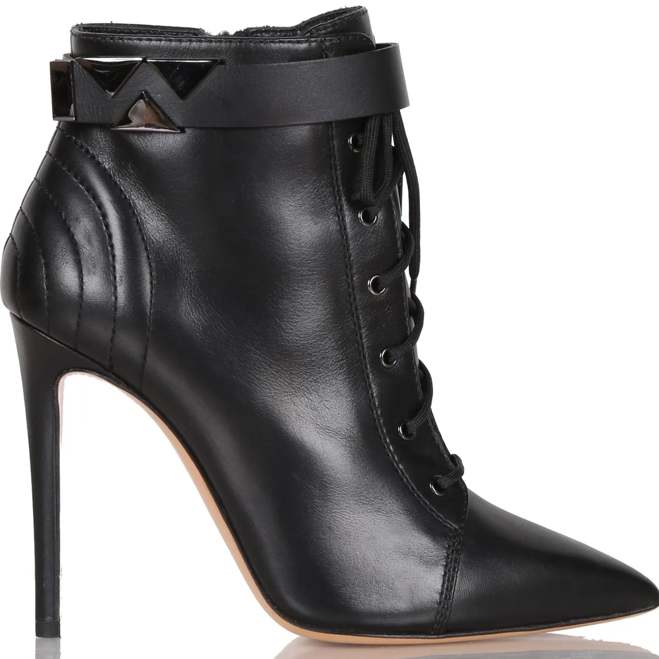 Tronchetto in pelle con zip laterale. Suola in cuoio e gomma. Tacco 110.